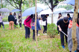 又到了一年一度的植树节,2017年3月10日法公系党支部开展了植树节活动——栽种杜鹃花并除草施肥。这几十株杜鹃花是党员教师、各班团支部捐资购买的。在我支部唐永红副副书记的带领下、系支部邱伟波老师、张文娟老师及50多名学生参加了此次植树活动。天空虽然下着雨,但参加此次活动的老师、同学们却热情高涨,他们相互协作,挥起铁锹、锄头,挖坑、扶苗、填土、踩实、浇水,干得热火朝天。活动现场到处回荡着同学们的欢声笑语,他们种下了绿色的希望,看着一株株杜鹃花在春风中摇曳,来年将迎来红彤彤的春天。