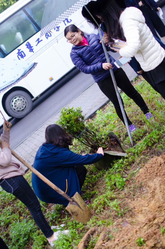 系支部唐永红副书记亲自指导学生栽种杜鹃花