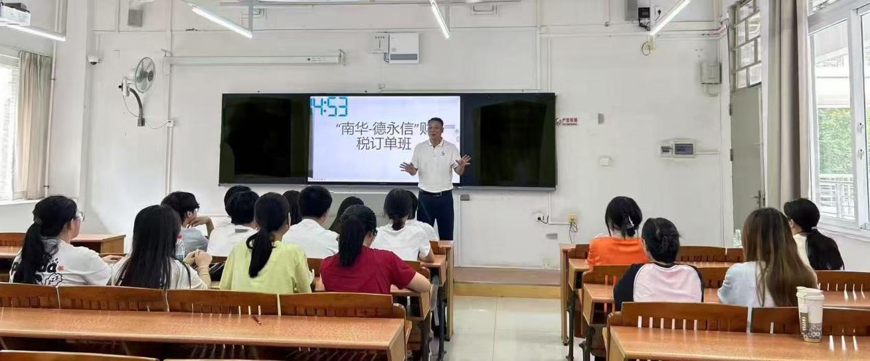 6月11日下午,深圳德永信财税集团有限公司人事部经理袁春与行政部主管朱碧云一行,走进广东南华工商职业学院清远校区,为前期报名参加德永信财税订单班的23名同学带来了一场别开生面的面试。此次面试不仅为学生们提供了实习的优质机会,也标志着校企合作迈出了坚实的一步。