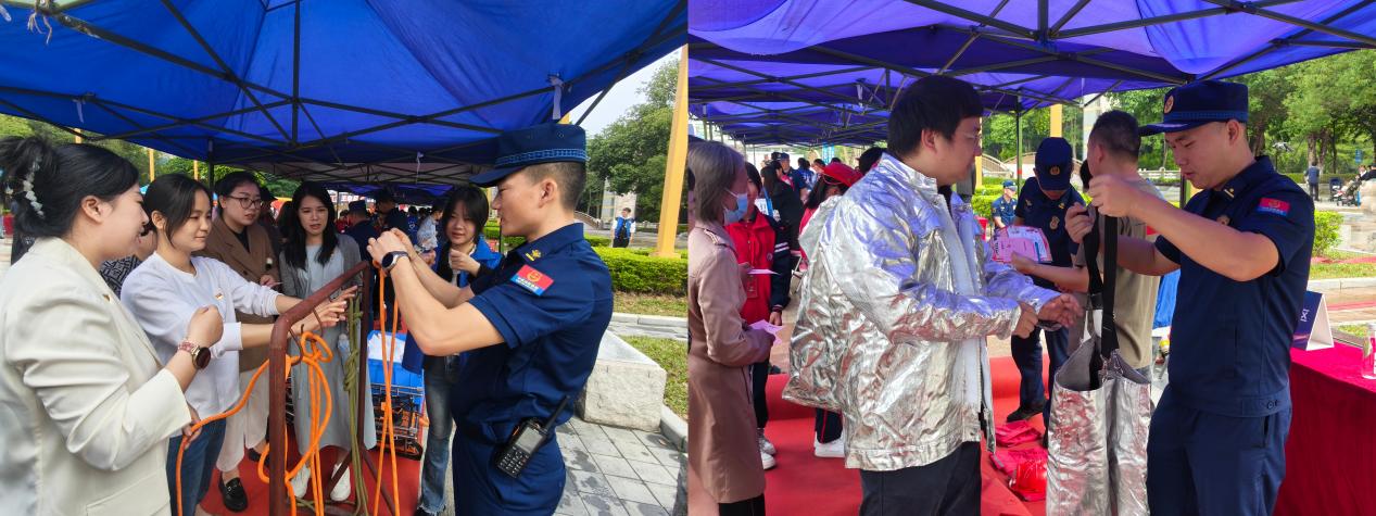 活动现场,教师党员带头示范,带领学生化身消防志愿者,向市民发放宣传手册、讲解家庭防火常识与灭火器使用技巧,耐心解答用电用气安全疑问。在体验区,教师党员与学生共同参与模拟火灾疏散、消防器材实操等项目,在专业消防员指导下锤炼应急处置能力,以实际行动落实全会精神中“提升安全治理效能”的要求。