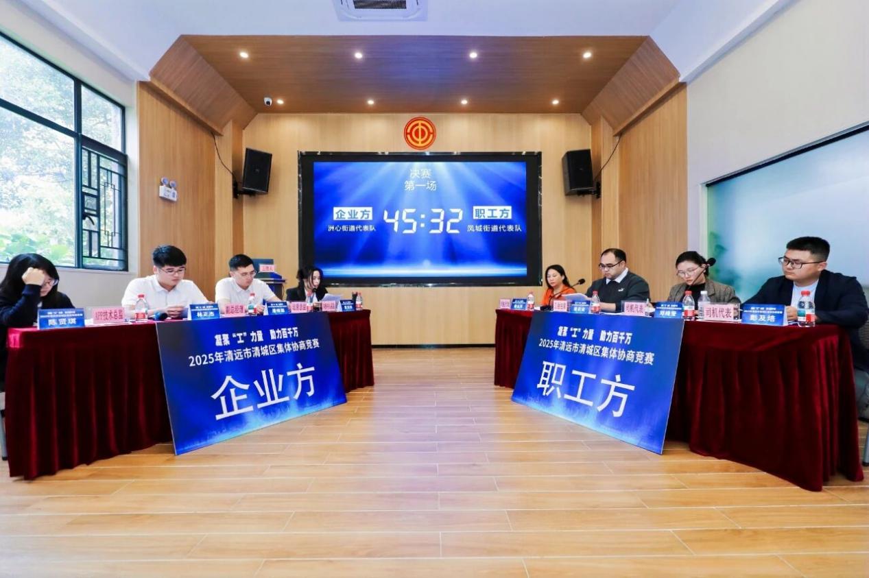 本次集体协商竞赛由清城区总工会、区人社局及区工商联联合举办,旨在推进集体协商工作,助力构建和谐劳动关系。决赛现场气氛紧张而热烈,闯入决赛的源潭镇、飞来峡镇、洲心街道、凤城街道四支代表队,围绕特定案例,分饰职工方与企业方展开限时模拟协商。选手们展现出对劳动政策法规的精准把握、协商策略的灵活运用以及化解矛盾、寻求共赢的专业素养,充分体现了集体协商在协调劳动关系中的重要作用。