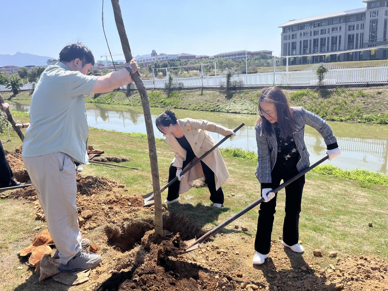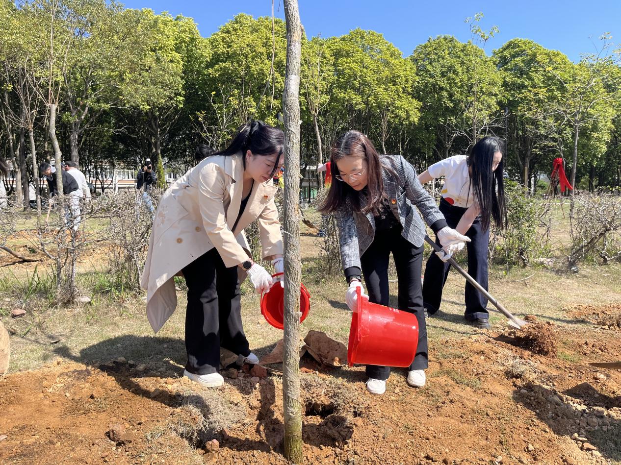3月12日,数智管理学院学生党支部在清远东城街道长埔村开展3月植树节主题党日活动。院党总支书记胡娟、学生党支部全体教师及学生党员参加了此次植树活动。