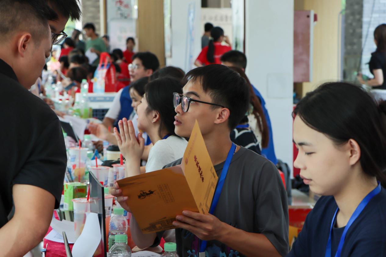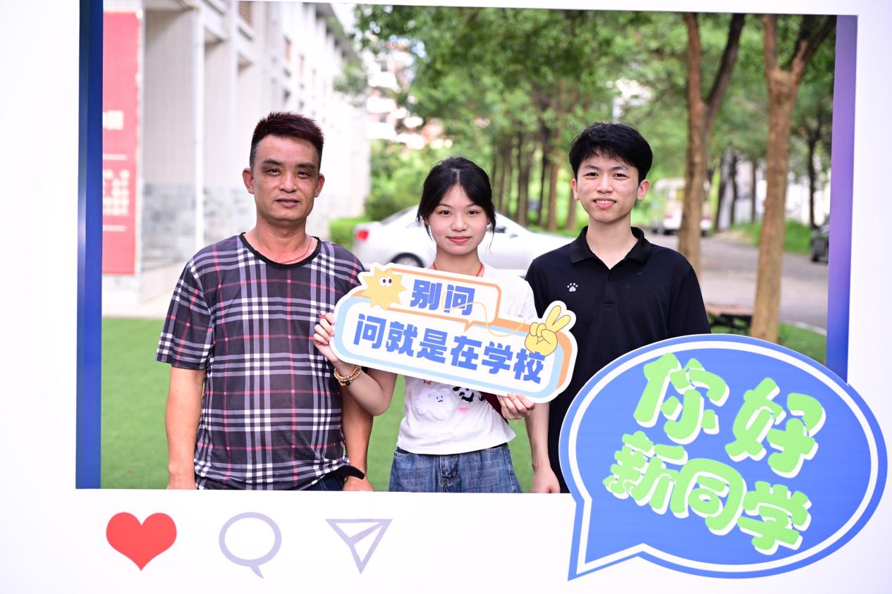 在架空层,每个班级都设有接待点,包括凉亭休息处、行李寄存处、签名拍照墙等设施。新生们可以在此稍作休息,整理行李,并与家人或新同学合影留念。此外,现场还提供了即时拍照服务,让新生们能够捕捉到这一珍贵时刻。在志愿者的有序引导下,迎新工作有条不紊地进行着。学院领导也亲临现场,与新生们亲切交流,合影留念,并为新生们讲解入学注意事项。他们的到来不仅为新生带来了关怀与温暖,也极大地鼓舞了志愿者们的士气。