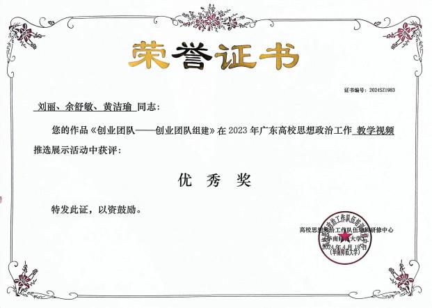 2023年广东高校思想政治工作教学视频优秀奖 |