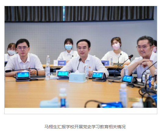 会上,党委书记、校长马栩生以党史进校园为重点汇报了学校开展党史学习教育的相关情况。党史学习教育开展以来,学校党委高度重视,坚持以习近平新时代中国特色社会主义思想为指导,全面贯彻党的教育方针,落实立德树人根本任务,推动党史进校园、入头脑,在完成规定动作的同时,充分利用工会资源,打造党领导的广东工运史特色培训班、劳模工匠德育导师讲党课等工会院校党史学习教育品牌。下一阶段,学校将牢牢把握党史学习教育任务要求和工作重点,持续在狠抓落实上下功夫,在学深悟透上下功夫,在为民服务办实事上下功夫,在开好高质量发展十四五新局上功夫,以坚定的政治态度,务实的学习作风,切实把党史学校教育的各项部署要求落到实处,确保党史学习教育取得实效,以优异成绩迎接建党100周年。