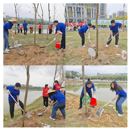 春回大地添新绿,植树护绿正当时。3月18日植树节当天,广东工匠学院党支部积极响应学校党委号召,由党支部书记凌红带领10名党员在学校清远校区实训中心沿湖区域开展“植树护绿·共建美丽中国”主题党日活动,以实际行动践行绿色发展理念,弘扬生态文明新风。