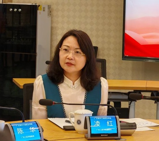 交流会上,广东工匠学院副院长凌红代表学院对中建八局一行的到来表示热烈欢迎。她重点介绍了广东工匠学院的历史发展、学历教育和非学历培训方面的业务,以及肩负广东南华工商职业学院产教融合的任务和使命。她介绍,广东工匠学院经过实践探索,已确立产业工人思想政治引领、服务制造业高质量发展,促进数字化转型三大发展主线,创新构建“政工校行企”五方协同机制,通过职业教育与产业需求的深度对接,持续深化产教融合实践。