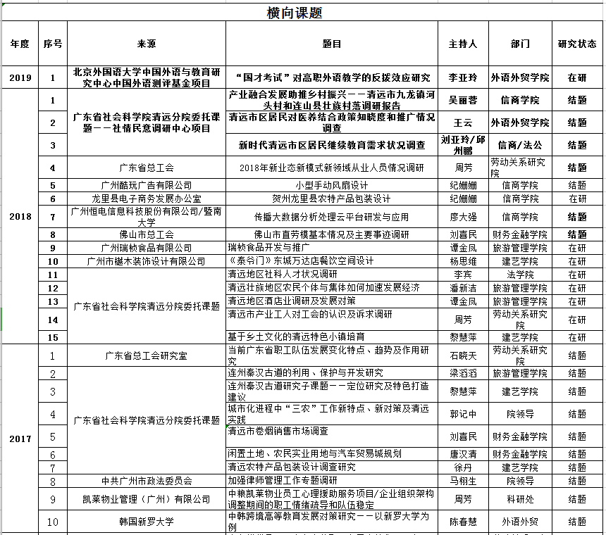 横向课题一览表