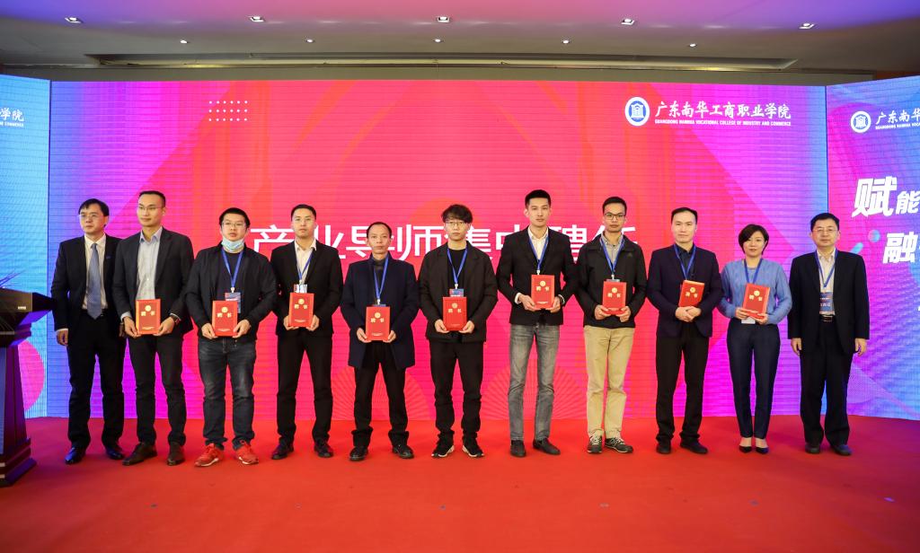 大会第三环节,是现代学徒制学院揭牌。教育部全国高职教育现代学徒制工作指导委员会主任委员赵鹏飞、我校党委书记马栩生共同为文化旅游现代学徒制学院隆重揭牌,学校副校长唐晓林为文化旅游学院颁发登峰计划奖金15万元。大会同时收到广东轩辕网络科技股份有限公司、碧桂园·千玺机器人集团、光辉城市(重庆)科技有限公司、广联达科技股份有限公司、北京世纪超星公司、广州创显科教股份有限公司、广州沐辰学院七家企业捐赠的教学、实训设备及资源,价值共计1017万,实现历史性突破。捐赠前,学校进行了14位产业导师首次集中聘任。