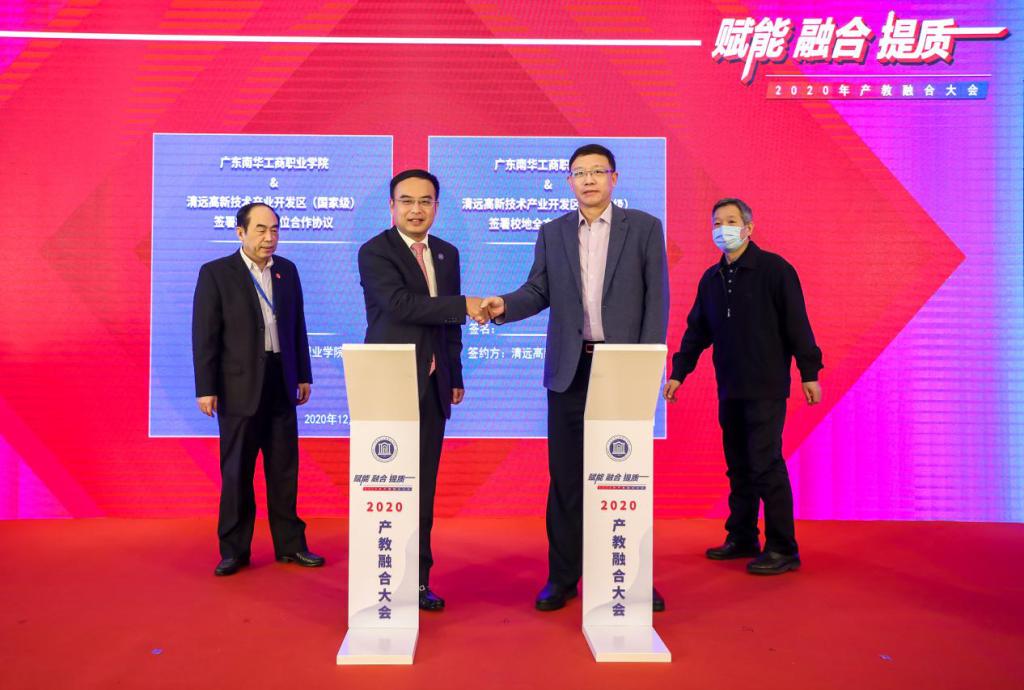 大会第一环节,是学校与清远国家级高新技术产业开发区签署全方位战略合作协议。作为首家进驻省职教城的高职院校,我校将遵循“人才培养与行业发展链接、学科链与产业链对接、党建服务与群众需求连接”的理念,与高新区按照“校地协同、优势互补、资源共享、合作共赢”的原则,致力缔结为深度融合的产教融合生态型合作伙伴、命运共同体,共建新材料应用创新研发平台,成立广东工匠学院清远高新区分院,共建现代学徒制学院,打造党建融合体,共建高水平就业创业平台,推动高新区和学校高质量内涵式发展。