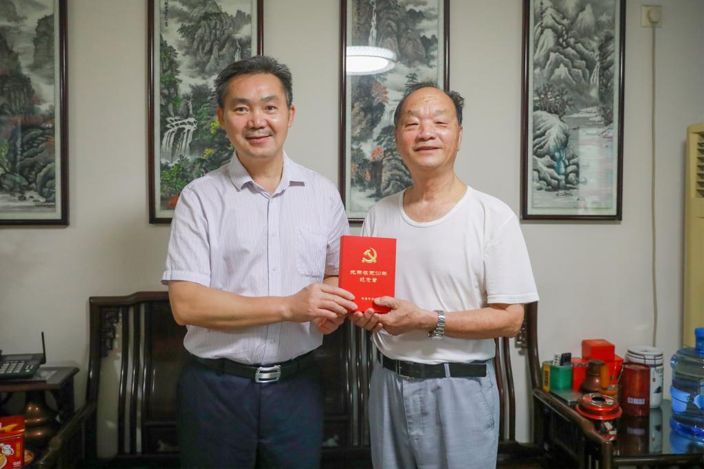 在中国共产党成立100周年之际,我校为6名党龄达到50周年以上的老党员同志颁发“光荣在党50年”纪念章。