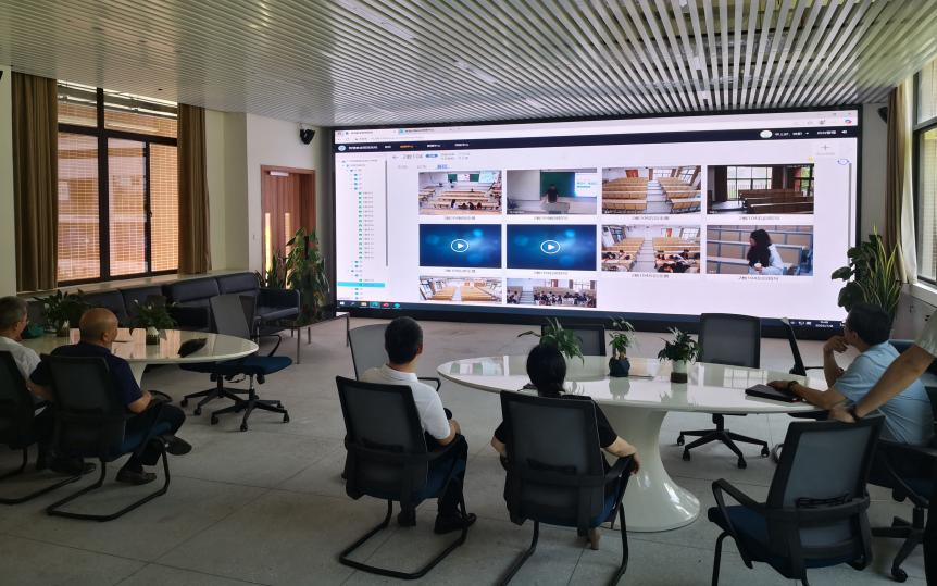 调研组还参观了智慧教室控制中心和智能制造实践中心。智慧教室控制中心将全校130多间教室的教学应用子系统及设备统一接入,实现了多系统深度融合、设备集中管控、数据汇总展示等功能,可对任意教室进行课程评估与实时观摩,有效提升了管理效能、降低了运营成本。智能制造实践中心配置了智能制造智慧工厂、4套智能制造切削单元和8套智能制造仿真平台,紧密对接粤港澳大湾区经济和制造业产业发展需求,为机械制造及自动化、工业机器人等专业的人才培养提供有力支撑。