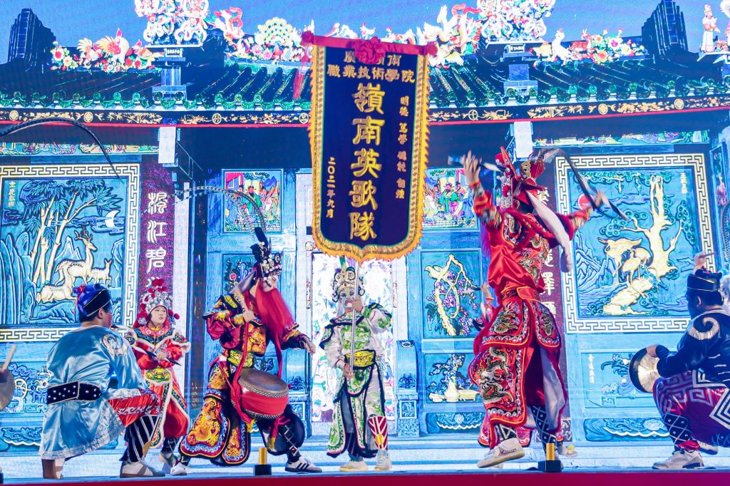 开学典礼环节结束后,迎新晚会华彩上演,晚会以“爱国荣校”为主题,创新设计“初遇・新程启航”“深耕・求索向上”“远航・星辰大海”三大篇章,为新生呈现生动的“开学第一课”。“初遇”篇章里,校地、校校联动节目与科普小品轮番登场,尽显多元风采与校园温度;“深耕”篇章聚焦学子成长与价值追求,教师合唱、情景演绎、舞蹈与朗诵等节目依次呈现,传递师长期许与青春向上的精神风貌;“远航”篇章立足未来展望,共鸣视频、歌舞表演接连上演,最后以师生校歌大合唱压轴,用激昂旋律燃动晚会尾声,为整场演出画上圆满句号。
