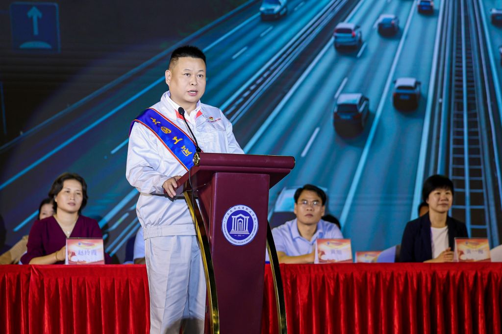 开学典礼重磅嘉宾,来自广汽集团的特级技师、大国工匠孙庆勇,向2025级新生分享了攻坚铝板焊接、试制的匠心故事,用亲身经历勉励同学们磨砺自我,在甘于平凡中成就非凡,真正用技术创新成就伟大梦想