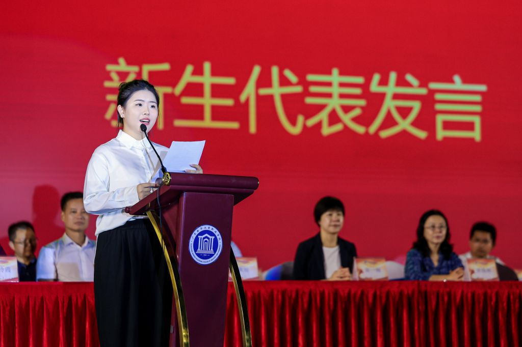 文化旅游学院潘新洁老师作为教师代表,用三段求学故事为新生划定大学坐标,她寄语新生勇敢去探索自我,把劳模精神、劳动精神、工匠精神转化为做人做事的底色。建筑装饰学院陈思豫代表全体新生发出青春宣言,今后求学路上,将以明德立心、敬业立行、求精立标、惟新立远,把劳动光荣写进每一次实践,用汗水和智慧开创未来。