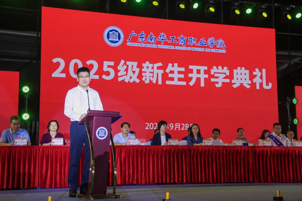 9月28日晚,我校“匠心筑梦·初心启航”2025级新生开学典礼暨迎新晚会在清远校区足球场隆重举行。学校党委书记、校长林海,特级技师、大国工匠孙庆勇,清远团市委副书记陈鹏,清远市红十字会党组成员、副会长胡志年,清远市中心血站站长黄旭,副校长唐晓林、王荣光,纪委书记黄一梅,学校各相关部门负责同志,各二级学院党政负责同志,以及教师代表一同参加活动。活动由学校党委副书记、副校长严新主持。