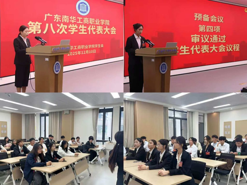 12月10日,学校第八次学生代表大会在清远校区第二实训楼202报告厅顺利召开。学校党委副书记、副校长严新出席并致开幕词。
