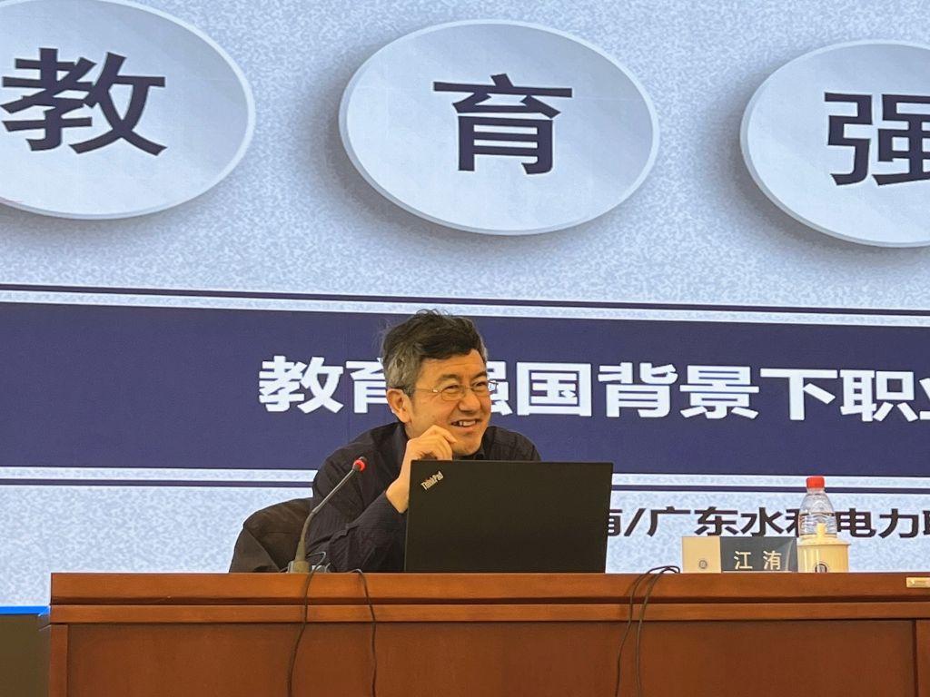 培训体系精准聚焦四大核心专题,构建从战略认知到教学实践的全链条学习框架。广州总工会经济工作与劳动保护部副部长吴忠以“以深化产业工人队伍建设改革的实践及思考--基于广州产改工作实务”为主题,深入剖析国家产改战略与地方实践,探索将工会组织网络、技能竞赛平台及工匠资源转化为特色育人资源的有效路径。广东水利电力职业技术学院原校长江洧以“教育强国背景下职业教育的时代使命”为题,系统解读新职业教育法等政策,从顶层设计视角帮助教师精准把握职业教育发展方向与“三大融通”改革逻辑。广州职业技术大学质量办主任贺佐成以“第二期‘双高计划’背景下职业院校高水平专业(群)建设的价值取向、主要内容与建设路径”为主题,解读新双高建设计划方案,从“换位思考到换位置思考”的核心逻辑剖析产教融合、课程教材及师资队伍建设、国际合作等关键指标与改革任务,为高水平专业群建设指明路径。广东水利电力职业技术学院质量监测与评估中心主任晏成明以“优化教学设计策略”为主题,锚定教学主战场,通过剖析教学设计、教学方法、教学内容、教学评价的不足,深度融合信息化工具,推动课堂革命,保障改革成效直达学生能力提升终端。