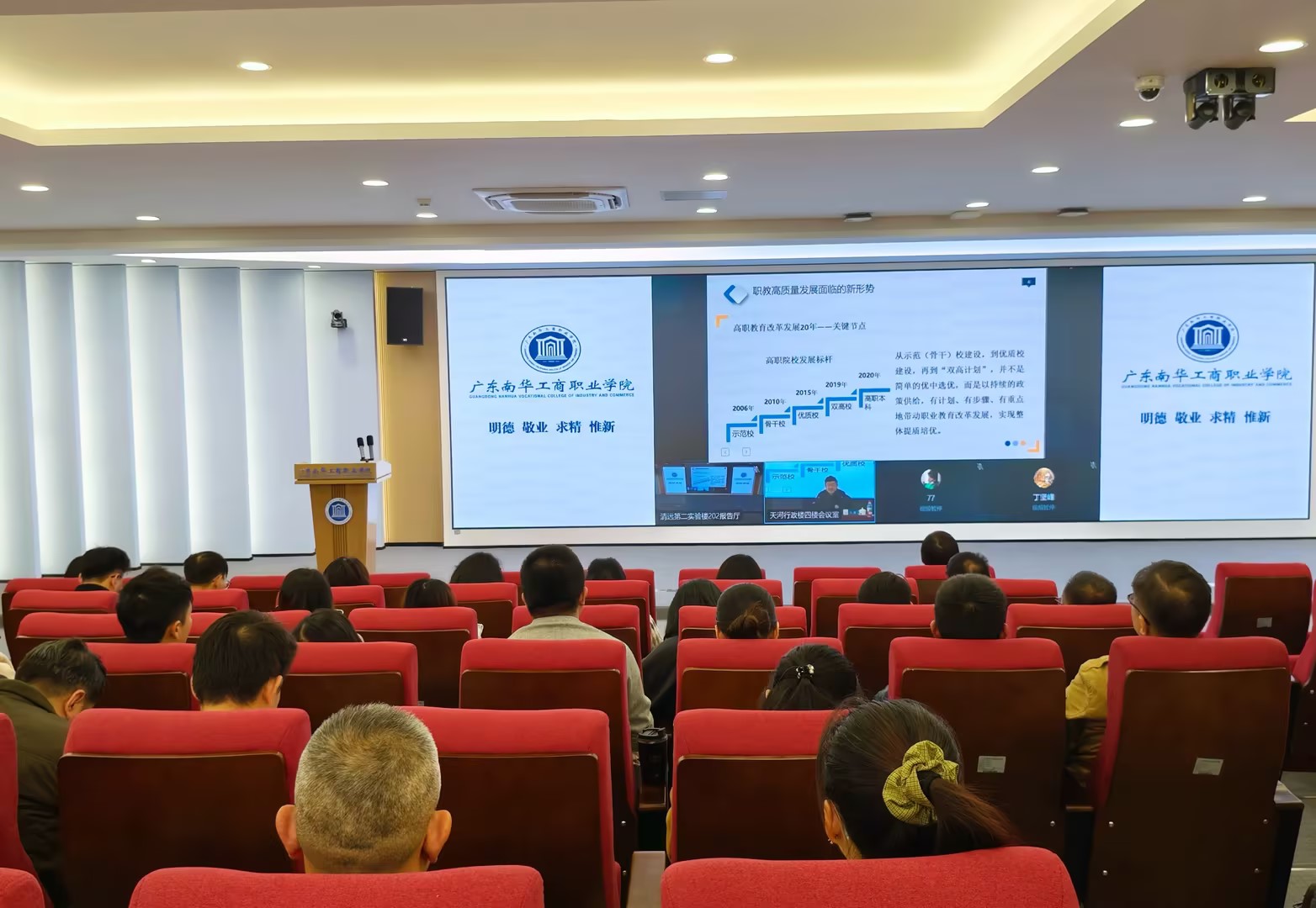 1月19日全天,全体参训人员在清远校区实训楼202报告厅通过视频直播形式,集中学习了“产改与工会知识普及”与“职业教育最新政策与理论”两个专题。内容紧密结合学校发展实际,为行政教辅人员及时把握政策动态、深化理论认知提供了针对性指导。