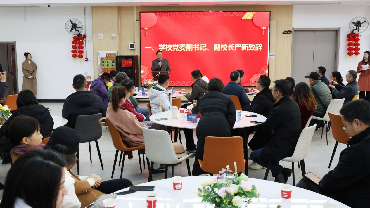 活动伊始,学校党委副书记、副校长严新代表学校党委向全体与会人员致以诚挚感谢与新春祝福。他指出,过去一年,学校始终坚持以习近平新时代中国特色社会主义思想为指引,深入贯彻落实党的二十大和二十届历次全会精神,紧密围绕强国建设战略部署,积极践行“支撑工会事业、服务湾区升级、赋能职工成长”的发展路径,系统推进教育教学、科技创新与人才培育协同发展,在建设中国特色一流工会职业院校的征程上取得了扎实进展与关键突破。面向新征程,学校将始终坚守为党育人、为国育才的初心使命,以更坚定的信念、更饱满的热情、更务实的行动,持续推动学校实现更高质量发展。