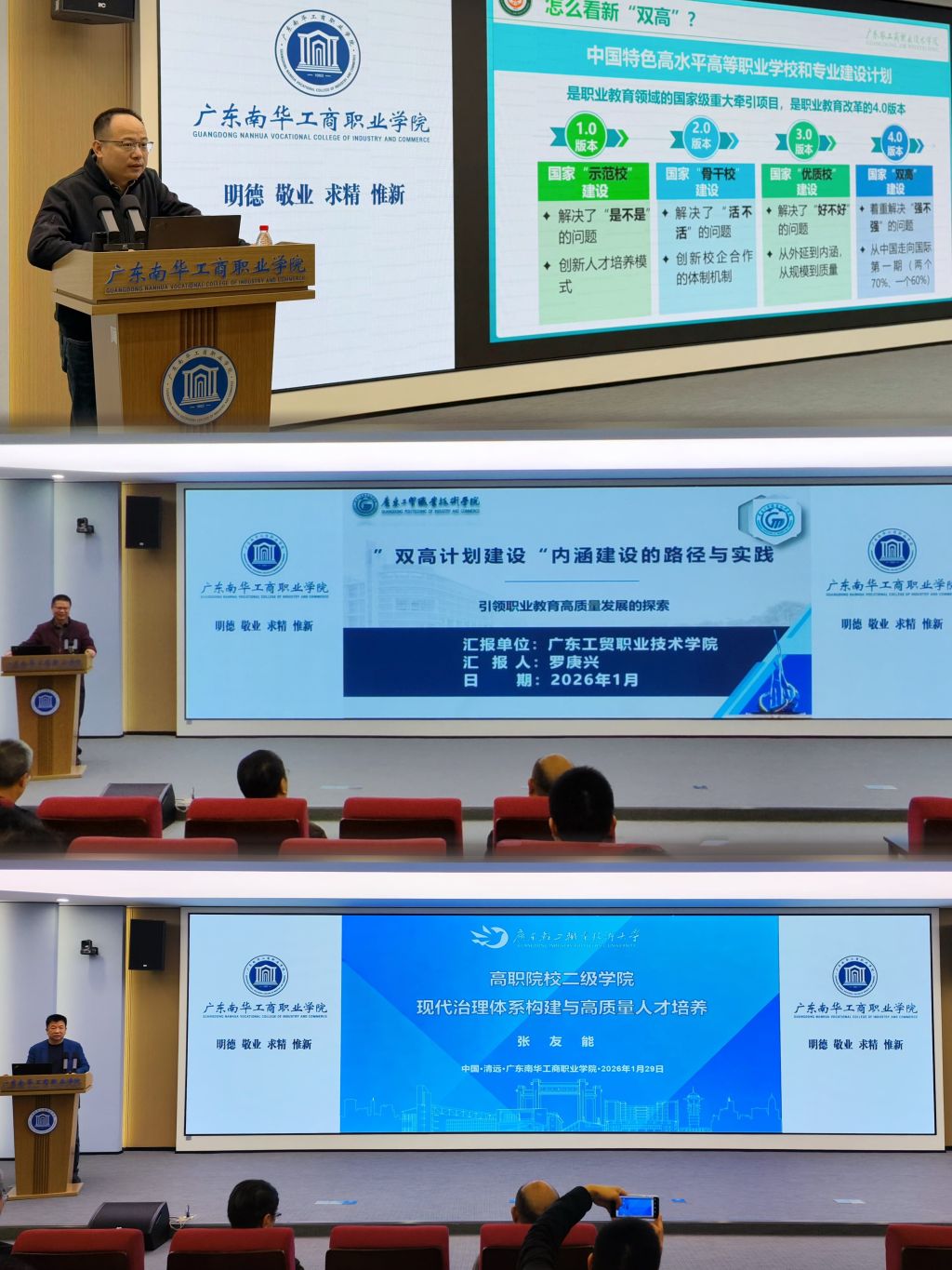 本次培训特邀廖中文、张友能、罗庚兴三位职业教育领域资深专家进行授课。廖中文教授深入解读了新“双高”建设背景下教学关键要素的关联改革路径;张友能教授分享了高职院校二级学院现代治理体系的构建与高质量人才培养的实践经验;罗庚兴教授则系统阐述了一流品牌专业建设的标准与实施策略。