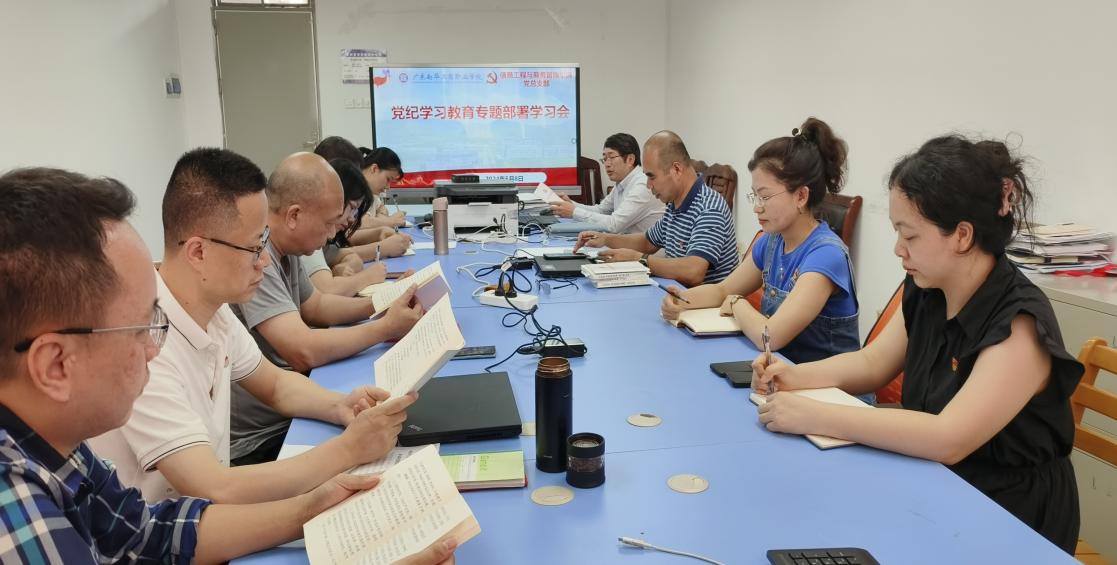 5月8日,信息工程与商务管理学院(以下简称“信商学院”)党总支部在清远校区开展党纪学习教育专题部署学习会,党总支部书记、院长李新作学院党纪学习教育部署并领学,党总支纪检委员刘杰作专题学习报告,会议由学院党总支常务副书记郑海清主持。