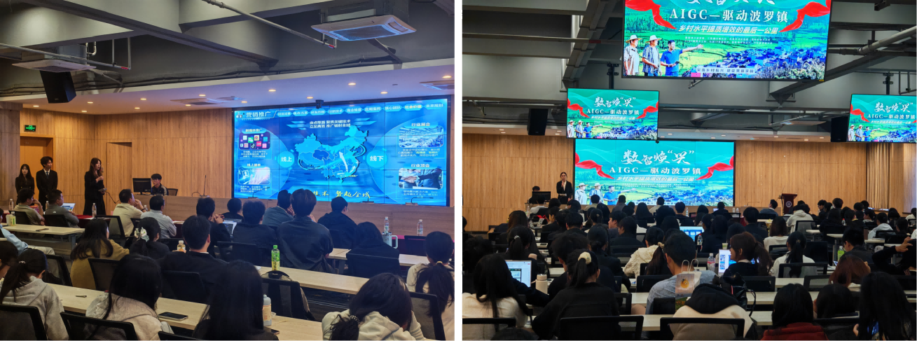 作为学院创新创业教育的重要平台,本届院赛在赛制与组织上持续优化,赛事严格对标省赛标准完善评审流程,赛前开展赛前宣讲、规则解读、往届优秀作品展示、经验分享等活动,全方位提升赛事规范性与育人实效。经评审,最终《数智赋能,焕启“兴”机——AIGC驱动波罗镇》等6个项目获奖。