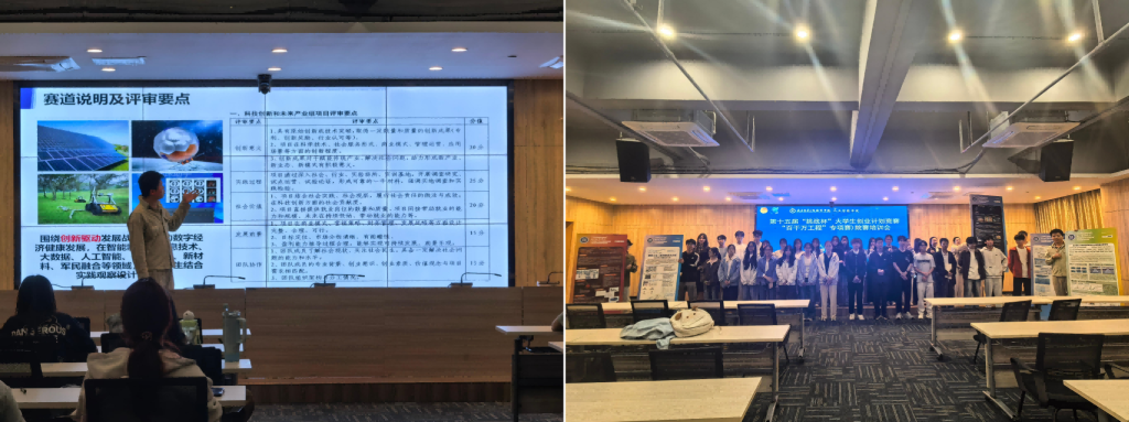 决赛现场氛围热烈,竞争激烈。13支参赛团队按照“PPT路演+现场答辩”两个环节展开比拼。路演过程中,选手们围绕项目创新性、技术亮点、实践成果、社会价值及发展前景等内容进行系统阐述,展现出扎实的专业功底与开阔的创新思维。答辩环节,各团队沉着冷静、应对从容,就评委提出的的技术壁垒、商业模式、市场拓展等问题展开深度思维碰撞。
