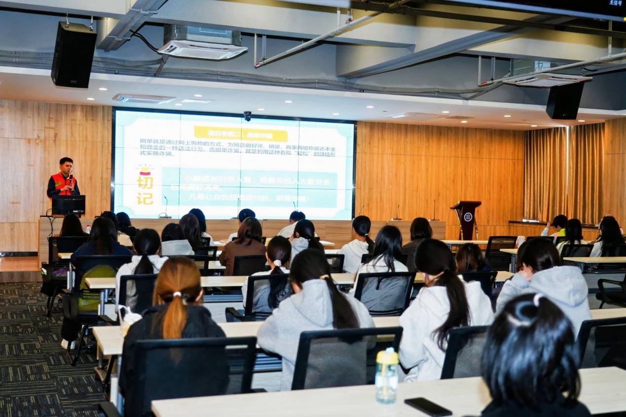 随后,“金融知识进校园”宣讲会在图书馆多功能报告厅面向50余名数智管理学院学生开展。浙商银行广州分行青年讲师结合高校师生实际,以电信诈骗识别、校园贷风险以及金融知识宣教为主题,通过真实案例剖析、互动问答等形式,深入浅出地帮助学生提升风险识别能力与财商素养。现场学生踊跃提问,收获颇丰。