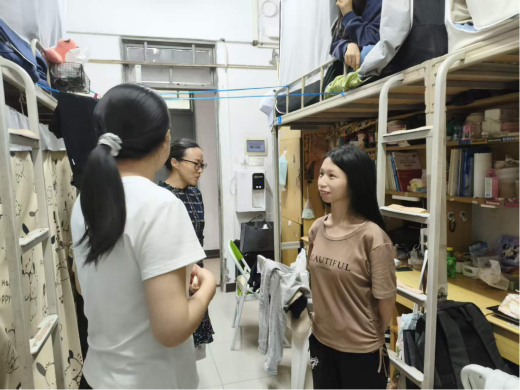 走访过程中,建筑装饰学院的教师们秉持“安全第一、关怀于心、落实于行”的原则,逐间走进学生宿舍,与同学们面对面亲切交谈,细致询问大家的“五一”假期出行计划、安全防护准备情况,以及日常宿舍生活中的各类需求,认真倾听同学们在住宿、学习中遇到的困难与诉求,对同学们提出的疑问逐一耐心解答。