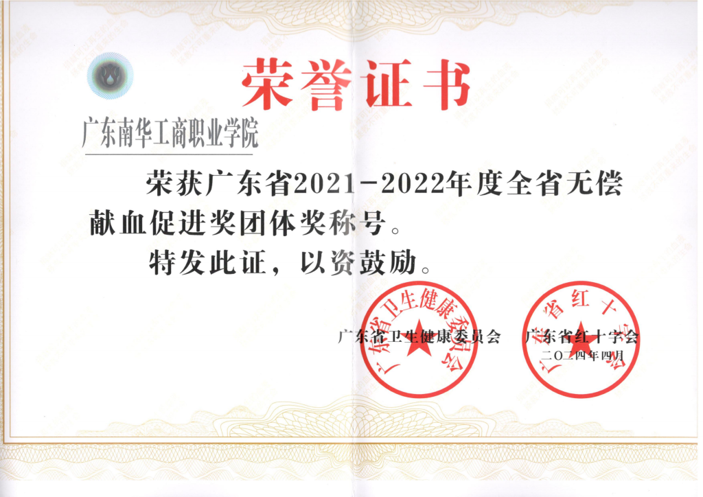 近日,我校被广东省卫生健康委、广东省红十字会授予2021-2022年度无偿献血促进奖团体奖称号。该表彰两年开展一次,是全省无偿献血领域的最高荣誉,我校首次获此殊荣。