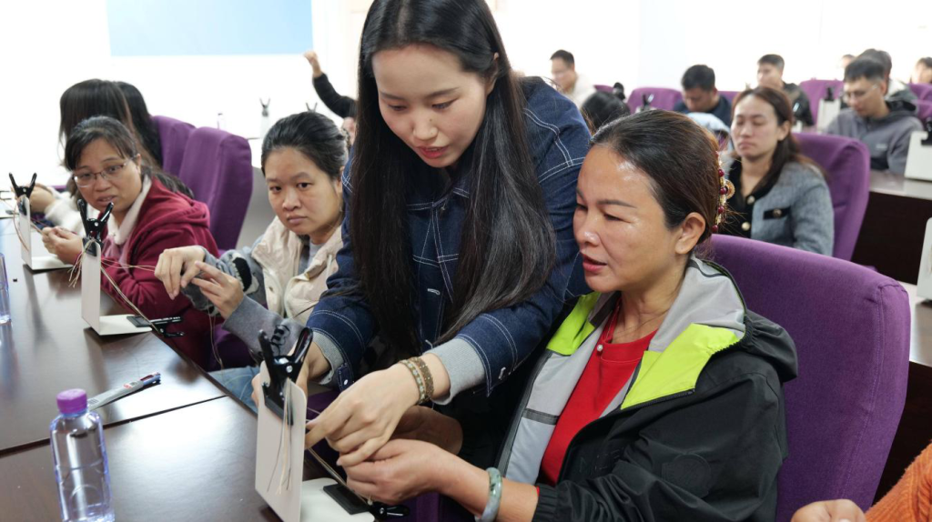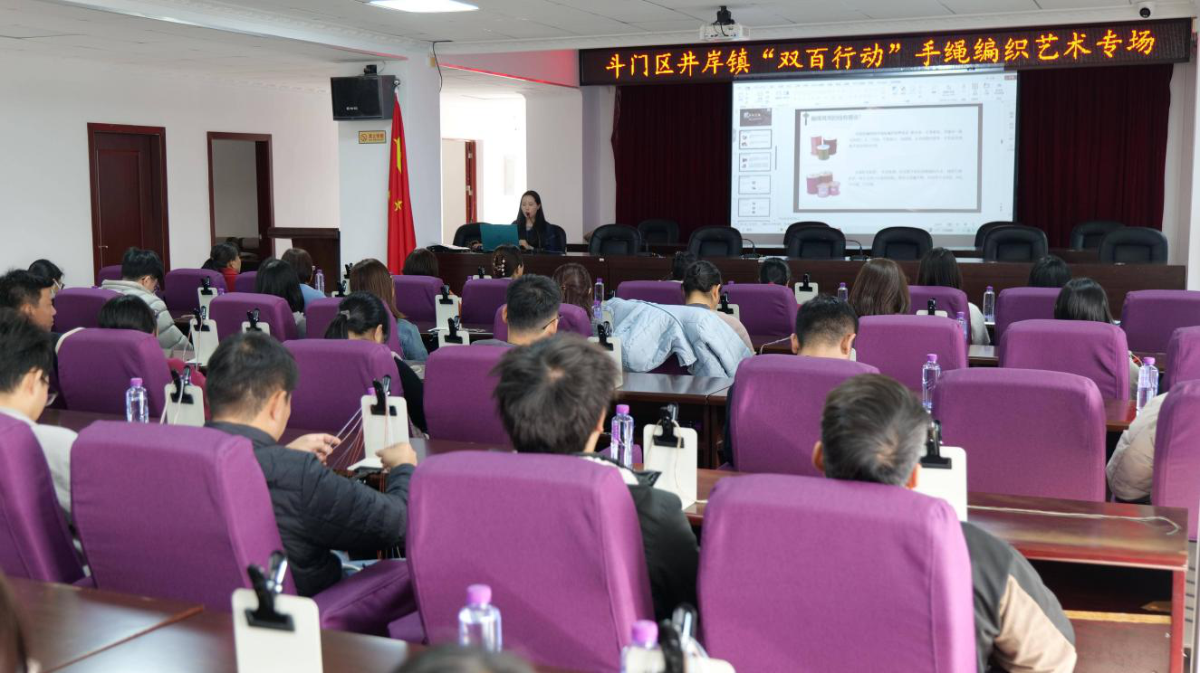 为深入贯彻省委“百县千镇万村高质量发展工程”部署,推动城乡区域文化协同发展,丰富基层职工群众精神文化生活,2025年12月15日,广东工匠学院积极响应“双百行动”号召,邀请我校数字创意学院阎文茜老师前往珠海市斗门区井岸镇新堂村,开展了一场别开生面的“手绳编织艺术”非遗文化体验培训活动。