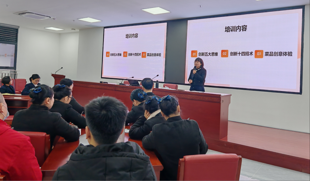 菜品创新设计课程由陈晓敏主讲,融合新中式与岭南文化元素,深入解析主题宴会的设计理念与文化内涵,引导学员实现从“美味”到“品质”的餐饮服务升级。