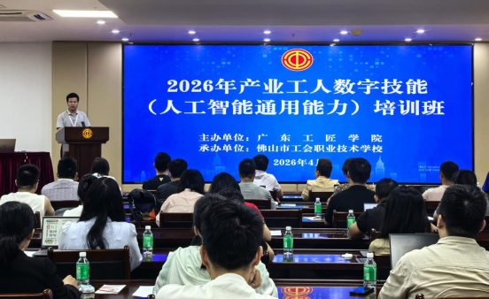 4月9日-10日,由广东工匠学院主办的2026年首期产业工人数字技能(人工智能通用能力)培训班,在佛山市工会职业技术学校成功举办。本次培训紧扣产业一线实际需求,以“掌握AI工具、赋能新质生产力”为核心目标,吸引了佛山制造业、服务业等领域的100名产业工人参训,学习氛围浓厚,成效显著。