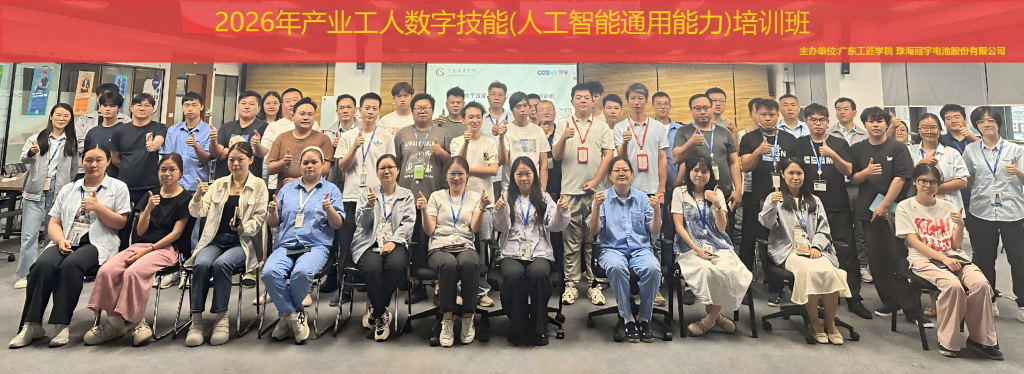 为深入贯彻落实省委“1310”决策部署,严格对标我校“双百行动”2026年重点工作任务清单,扎实推进斗门区产业工匠学院建设。4月23日,广东工匠学院教师团队走进珠海冠宇电池股份有限公司,在生产线旁开展 “人工智能通用能力提升” 专题培训,以实际行动落地高校赋能、技能提质、产业增效的帮扶目标。