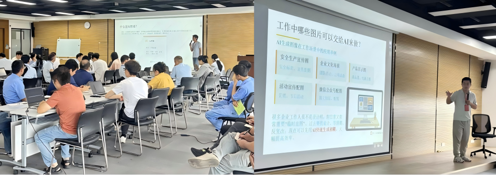 本次培训采取线上线下相结合模式,线下60余名一线产业工人现场参训,线上直播覆盖200余人,6个课时聚焦AI文本生成、数据辅助处理、智能绘图与视频制作等实用内容。由我校人工智能学院师资团队主讲,推动一线工人从传统“操作者”向“AI协作者”快速转型,实现“课堂设在企业、技能用在岗位”。参训学员表示,AI技能贴近生产实际,可直接用于日常工作提效。