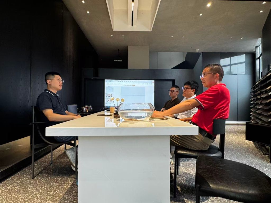 调研期间,公司总经理刘总全程陪同,带领学院一行参观了板材加工车间,介绍了家具材料的种类,并展示了设计公司的工作环境。随后,双方在办公室进行了座谈交流,围绕家具行业的生存现状、企业用人需求及未来发展方向等内容展开了全面深入的沟通。在用人需求方面,刘总不仅表示将扩大本企业的用人规模,还愿意积极推荐其他连锁公司招收我院学生,为学院毕业生实习就业以及订单班的顺利推进提供支持。
