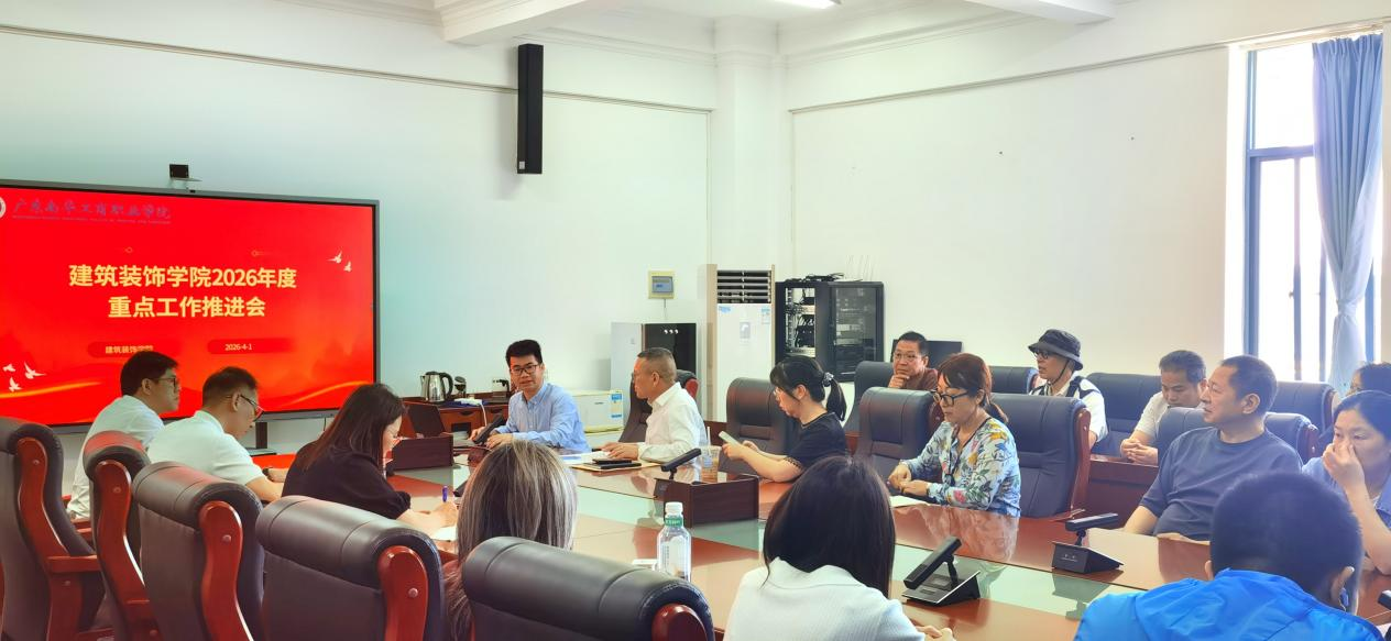 为深入贯彻落实学校党委工作部署,扎实推进建筑装饰学院2026年度各项重点任务。4月1日,建筑装饰学院在图书馆512会议室召开2026年重点工作推进会。会议由学院党政办公室主任赖志聪主持,学院全体教职工参加会议。
