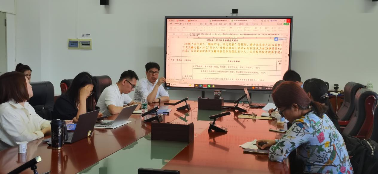 随后,张朝山对2025年学院考核得分明细表进行了逐项通报与深刻剖析。他直面问题、不留情面,严肃指出考核结果反映出的责任心缺失、工作标准不高、执行落实不到位等突出问题,对相关责任分工进行了严厉批评,为全体教职工敲响警钟。他强调,全体教职工必须清醒认识当前严峻形势,以树立正确政绩观为镜鉴,深刻反思、自我检视,坚决摒弃“躺平”心态和敷衍作风。要真正对标对表找准差距,深入查摆问题与不足,拿出刀刃向内的勇气和切实可行的举措,进一步压紧压实党建、教学、科研、学生工作等相关责任,以实绩说话、以实效答卷,坚决扭转被动局面,并对下一步整改落实工作提出了严肃明确的要求。