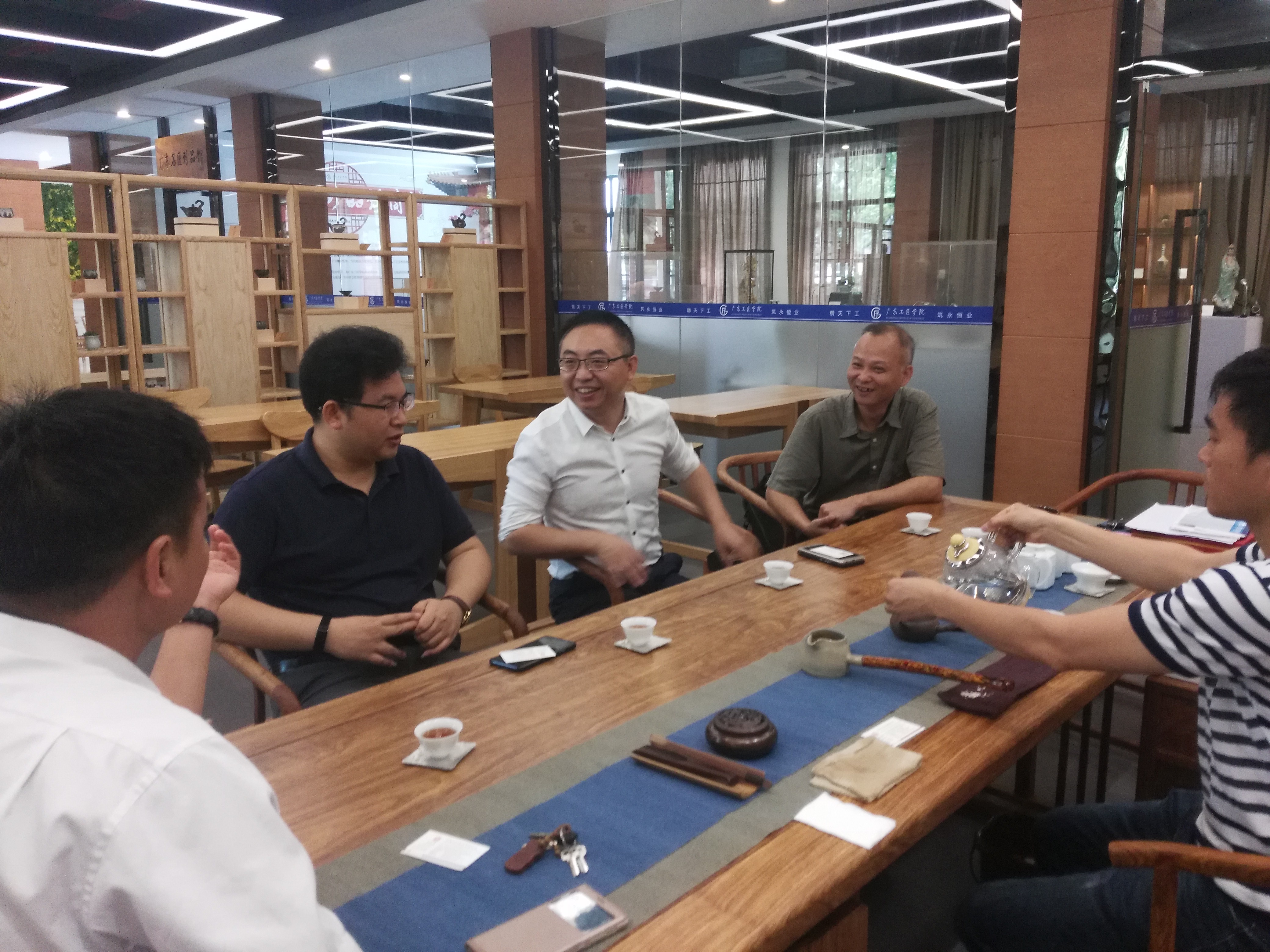 在座谈会中,王学真副校长介绍了广东工匠学院的成立过程、办学初衷,以宏扬“工匠精神”为目标,寄望稻香集团与工匠学院的深度合作能产生更大的社会效应;黄玉良副院长从建立实践基地、合作办学、专业融合、举办技能竞赛等各方面,与李晓明先生探讨了校企双方合作的可行性;李先生在介绍稻香集团的详细情况后,表达了集团董事长的意愿,希望能借助学校丰富的人才资源,共建校内实训室,建立产品研发中心,开展赴港劳务输出,使企业的持续发展具备更多的条件;张树清老师介绍了“现代学徒制”的办班情况,希望在前期协商的基础上,细化与推动与稻香集团的合作。