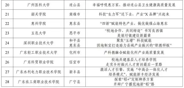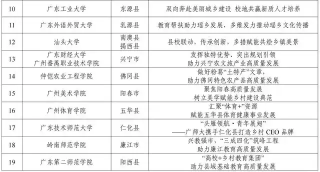 近日,广东省“百县千镇万村高质量发展工程”指挥部办公室、中共广东省委教育工委、广东省教育厅联合公布了28个“双百行动”首批省级优秀示范案例。