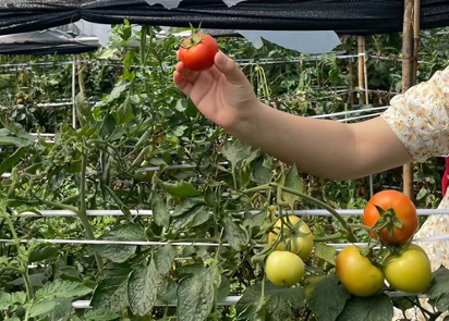 在西红柿基地,讲解员向同学们介绍,基地坚持环保理念,合理规划西红柿、青瓜等农作物的种植周期、科学种植,采取有机肥、深水井灌溉等环保措施,提高农产品的品质,同时也循环利用了当地的资源。为了让队员们更好地感受产品的品质,讲解员还带领大家走进种植番茄的大棚并进行采摘。