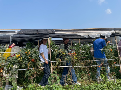 图:同学们在地缘农业采摘园的香印葡萄大棚前合影