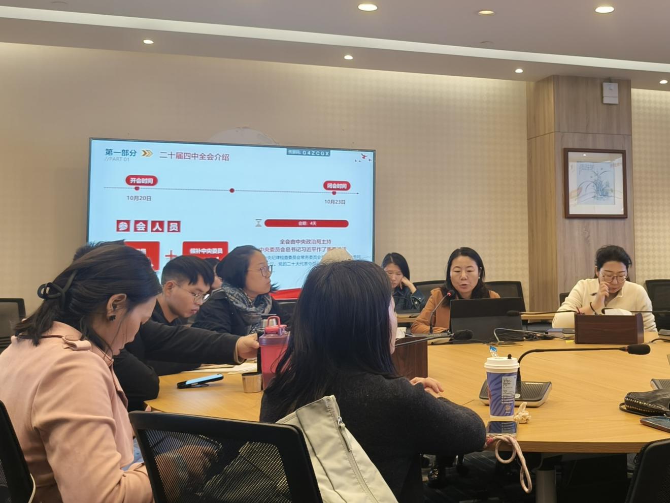 会议首先对二十届四中全会精神进行了专题宣讲。通过领导带头、辅导员及班主任进班级、党支部宣讲、教师融入课程思政等方式,将全会精神传达给全体师生。