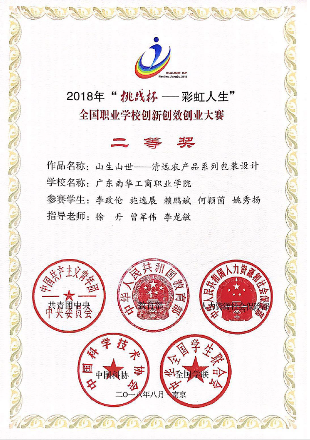 “挑战杯-彩虹人生”全国职业学校创新创效创业大赛二等奖