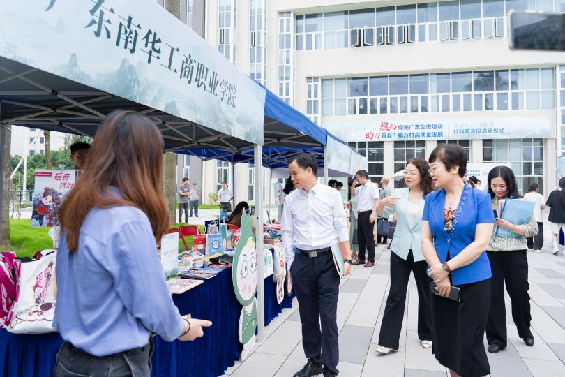 省社科联党组成员、专职副主席余鸿纯,清远市委常委、宣传部部长谭仕龙参观展位