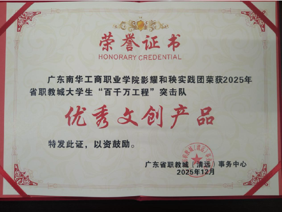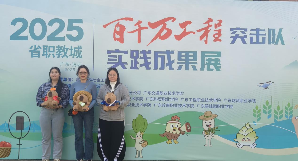 12月9日,由广东省职教城(清远)事务中心主办,广东省人才市场有限公司清远分公司、广东交通职业技术学院承办的省职教城大学生“百千万工程”突击队实践成果展顺利举行。我院影耀和秧实践团受邀参展,并凭借出色的文创成果,荣获2025年省职教城大学生“百千万工程”突击队“优秀文创产品”称号。