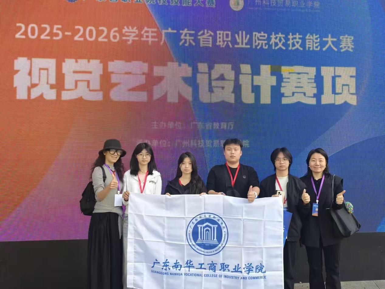 2026年3月7日,2026年度广东省职业院校学生专业技能大赛视觉艺术设计赛项在广州科技贸易职业学院举办,本次比赛共有72所院校参加,数创学院艺术设计专业学生叶书进、黄欣怡、毕俪玮、李鑫亨在指导教师徐丹和李辰指导下荣获三等奖。