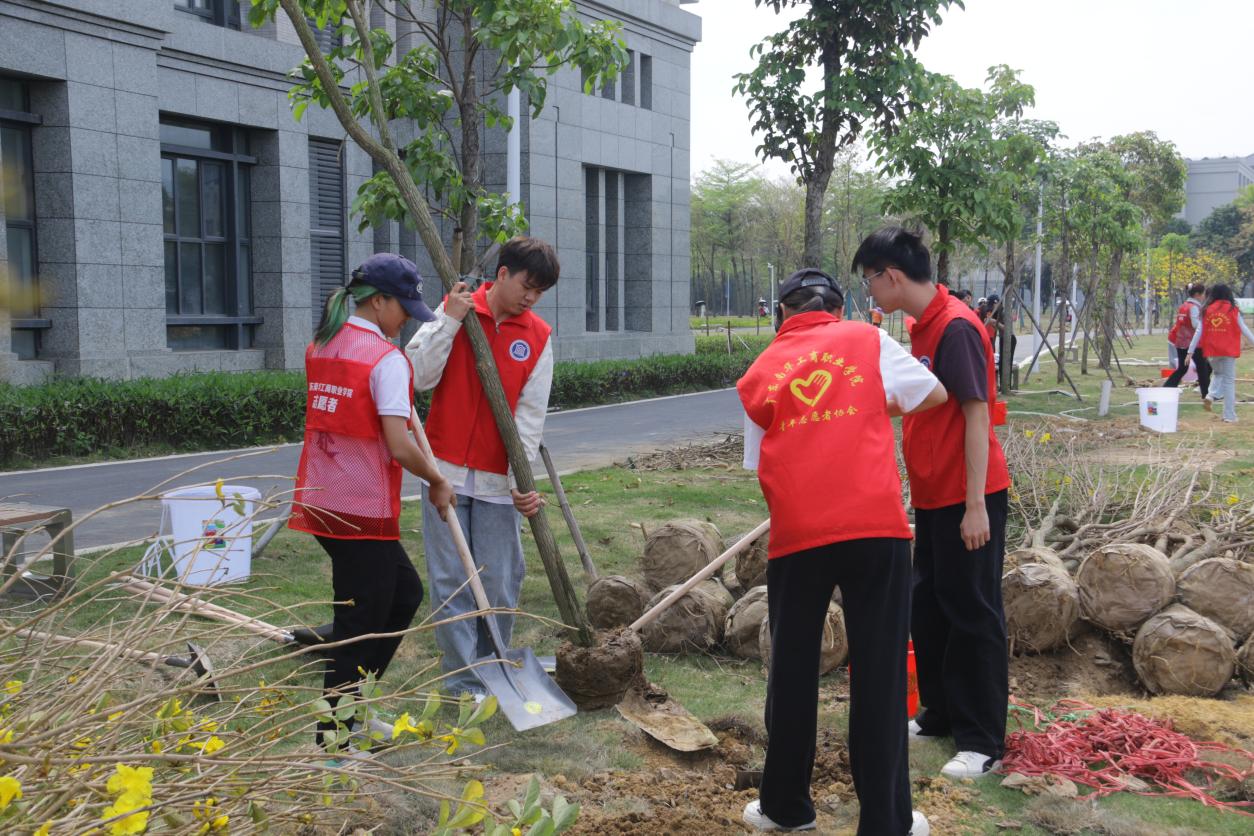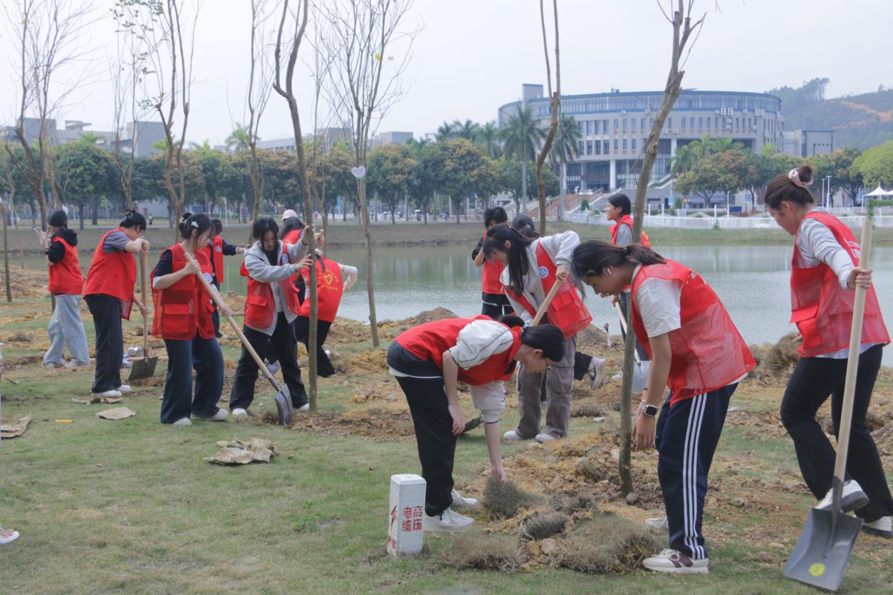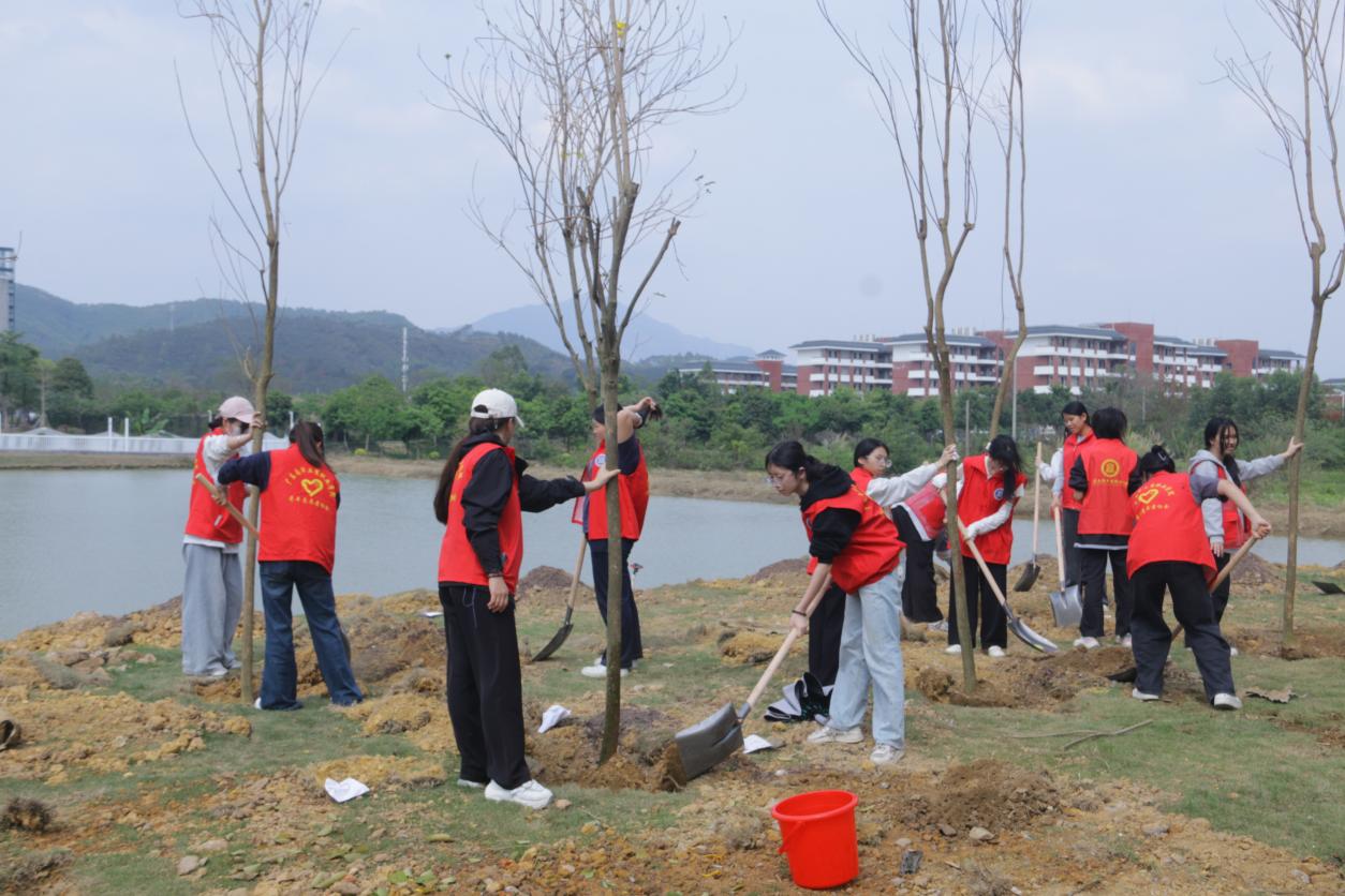 一棵棵新苗扎根土壤,一颗颗初心蓬勃生长。此次植树活动将生态文明教育、理想信念教育与劳动教育深度融合,既是“青马工程”实践育人的生动缩影,更是深化“行走的思政课”建设的重要举措。下一步,校团委将持续深化“思政+实践”育人模式,围绕学校2026年“12310”重点任务,组织开展更多形式多样、主题鲜明的实践活动,引领广大青年学生以青春之我、奋斗之我,在服务广东高质量发展的火热实践中绽放绚丽之花。