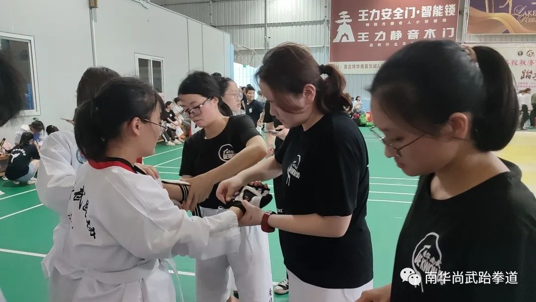 这次比赛,也体现了我们尚武跆拳道团队合作的精神,每次当参赛人员上场之前,我们的社长卓小艺都会在比赛前讲述战术策略,下场后每个人都为队员脱护甲,护膝,及时为人员散热,恢复体力。